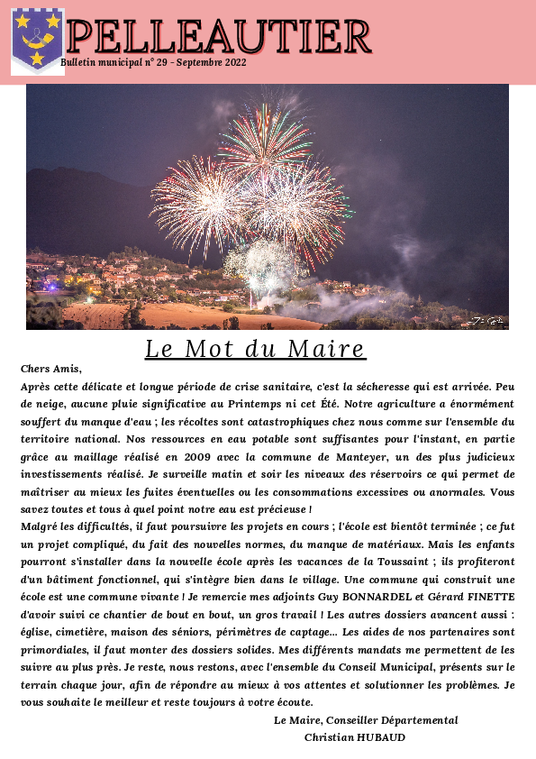 Bulletins municipauxBulletin Municipal de Janvier 2025Bulletin municipal de Juillet 2023Bulletin municipal Septembre 2022